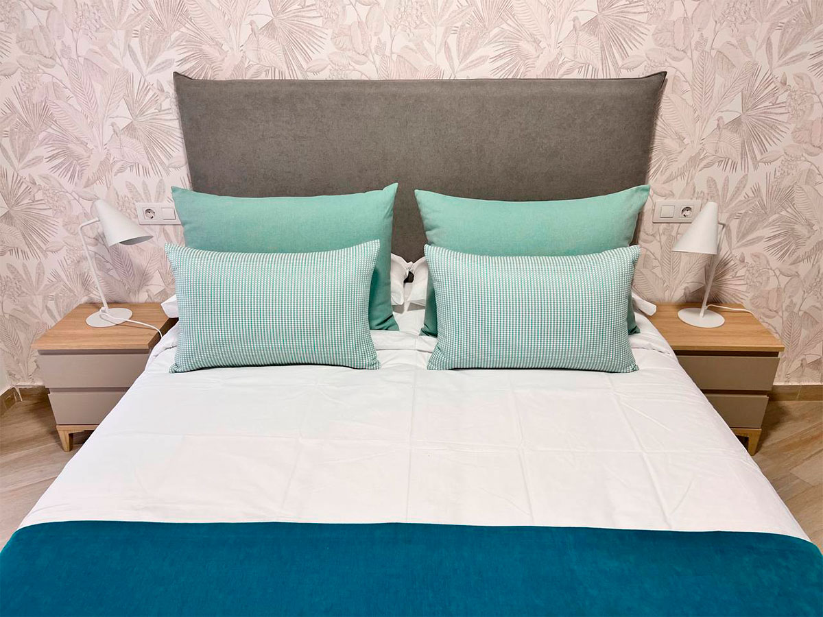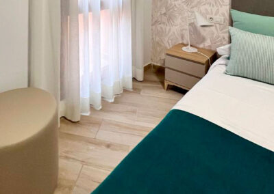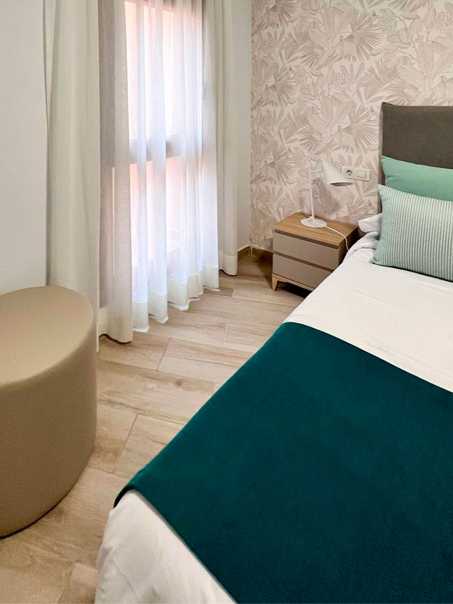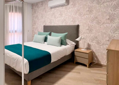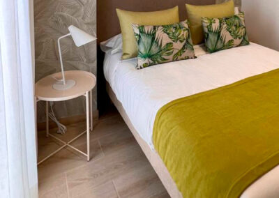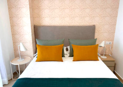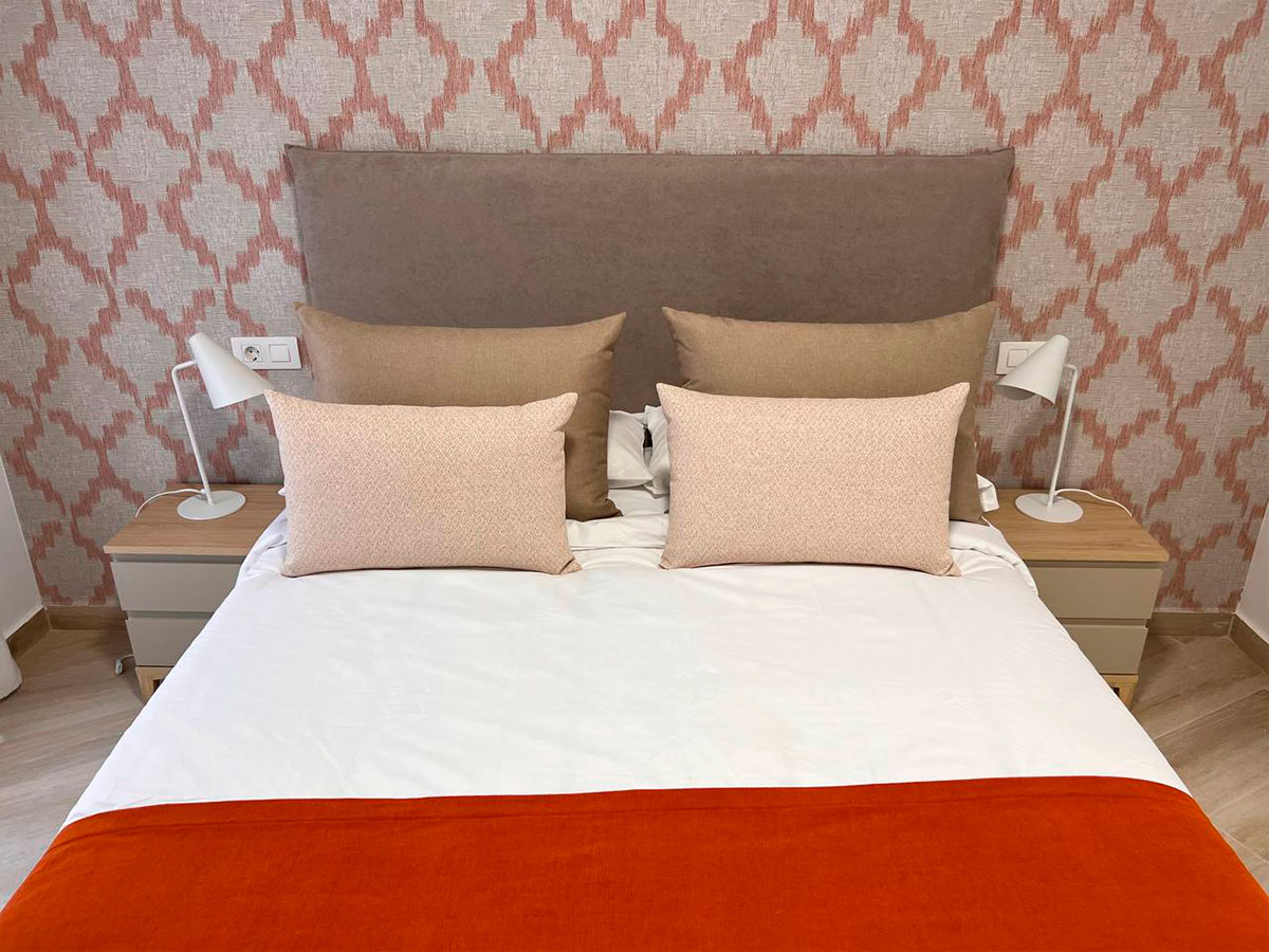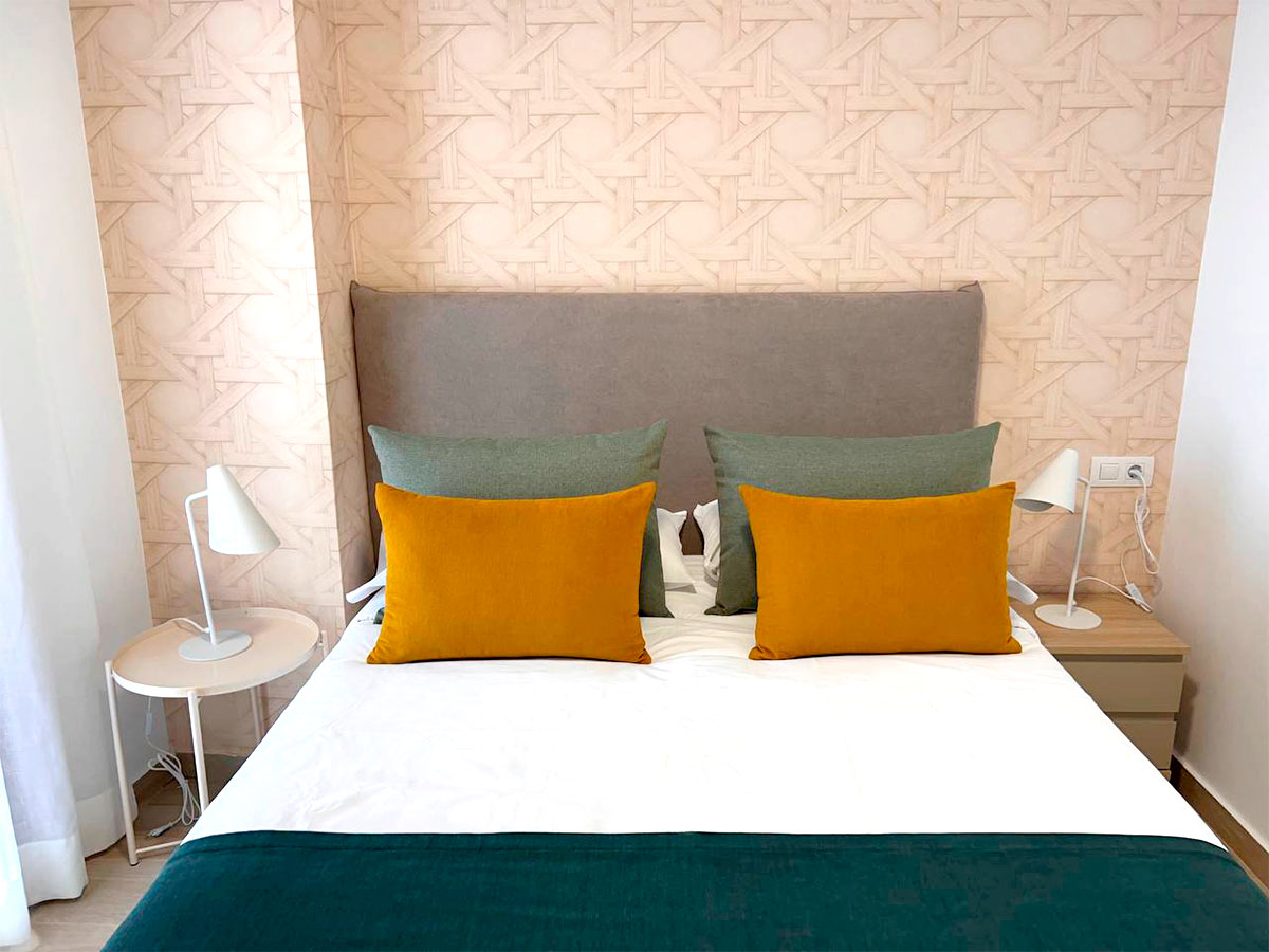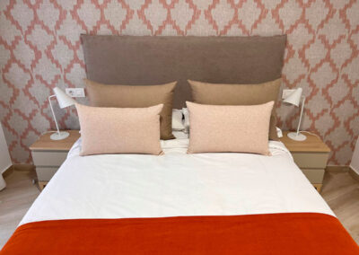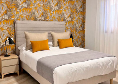 Hemos intervenido seleccionando todas las piezas de mobiliario de las diferentes estancias, así como todos los elementos decorativos, desde los papeles pintados en las paredes de los cabeceros de los dormitorios, hasta los visillos, estores, alfombras , ropa de cama y la iluminación decorativa.