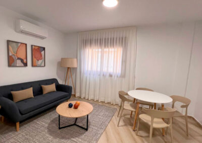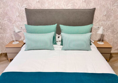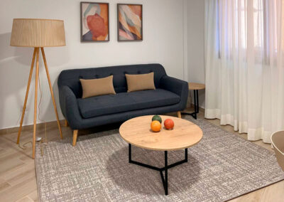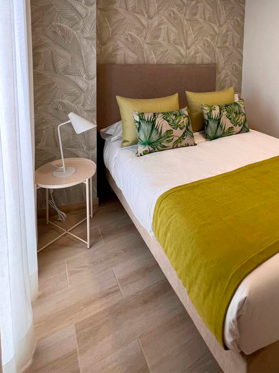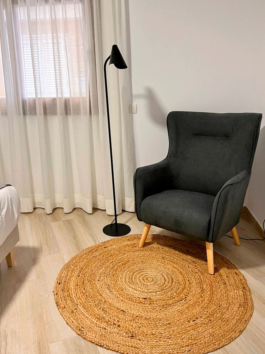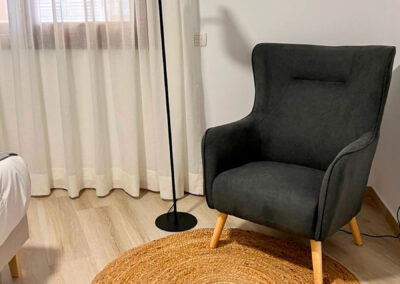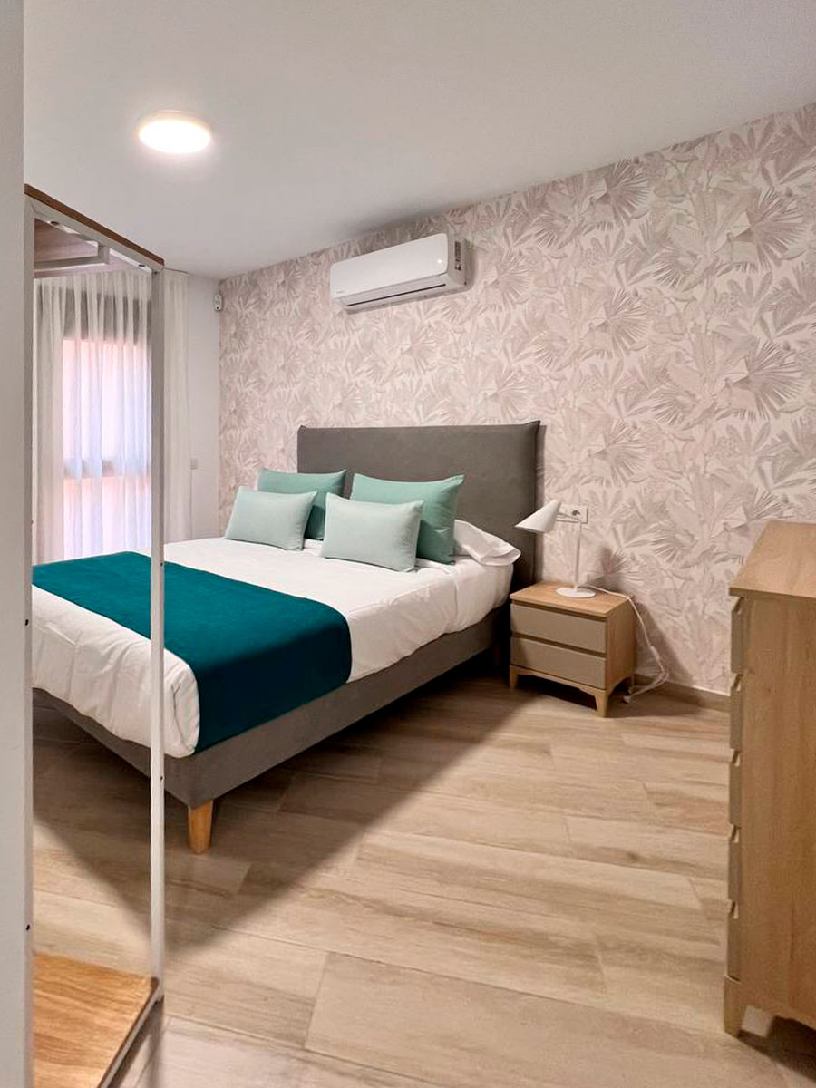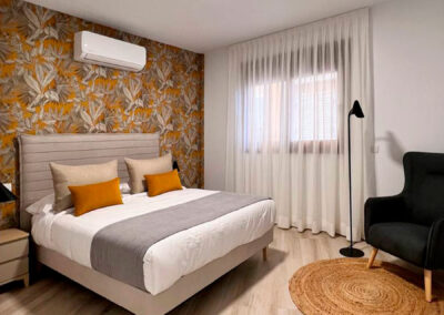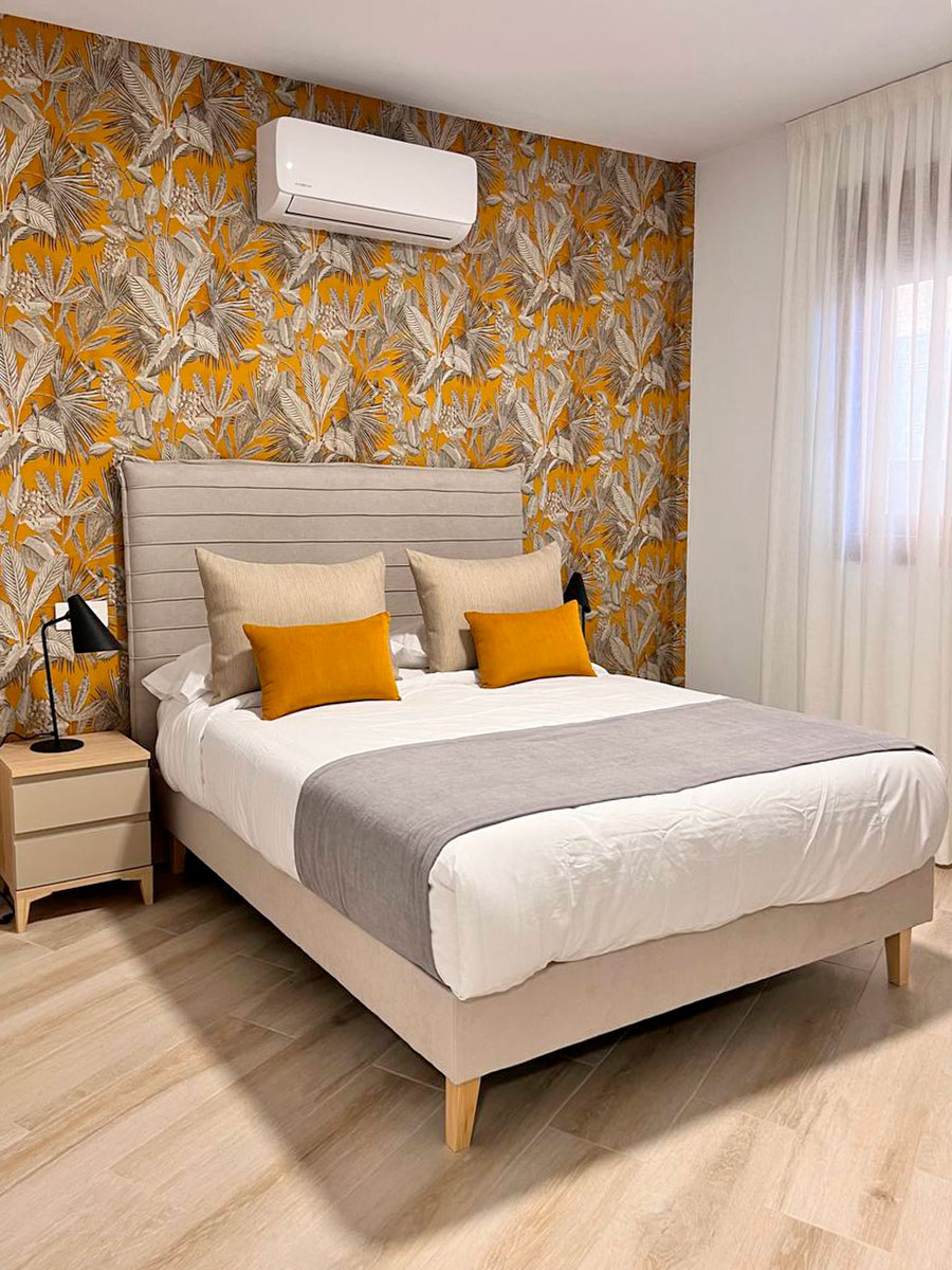 Hemos intervenido seleccionando todas las piezas de mobiliario de las diferentes estancias, así como todos los elementos decorativos, desde los papeles pintados en las paredes de los cabeceros de los dormitorios, hasta los visillos, estores, alfombras , ropa de cama y la iluminación decorativa.