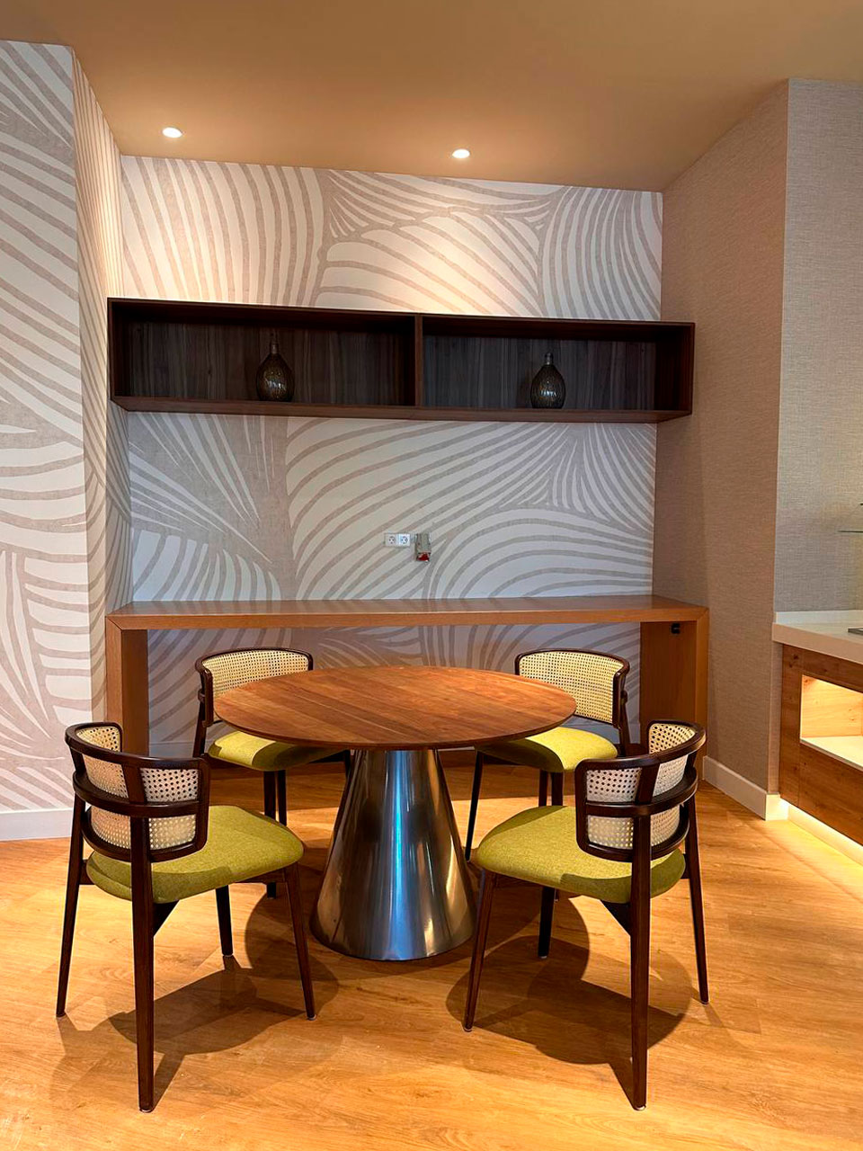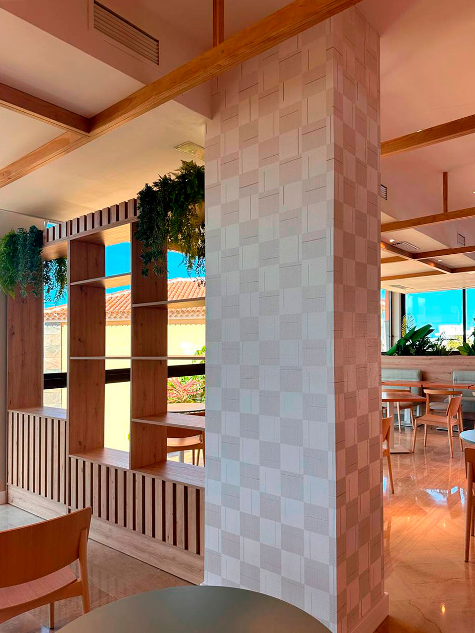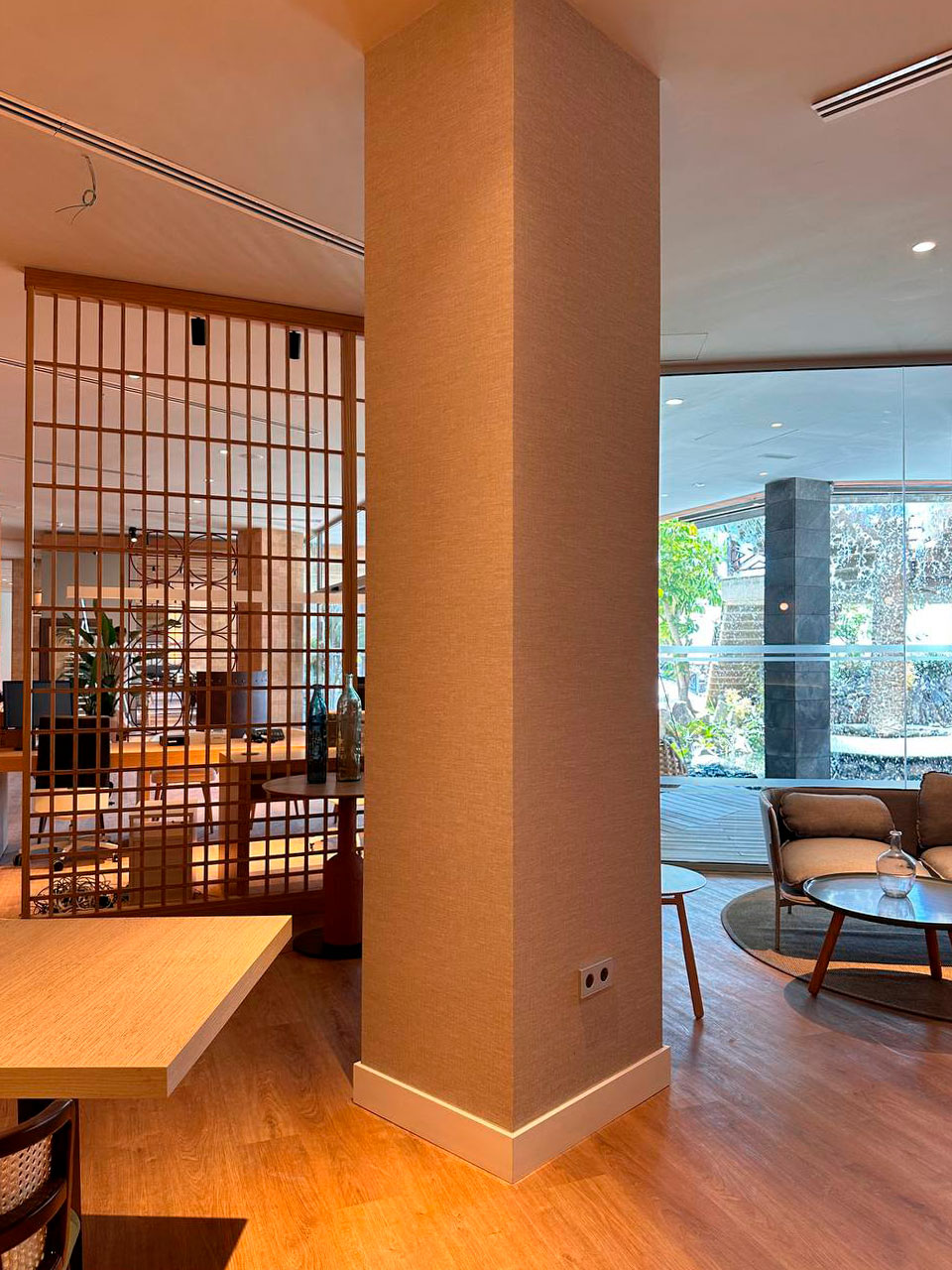 Para la reforma de este establecimiento hotelero han contado con Decorcentral para realizar los revestimientos en papel pintado vinílico en varias zonas del hotel, como en la recepción, restaurantes y habitaciones.