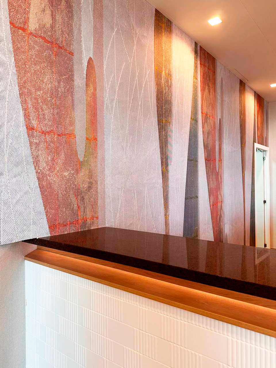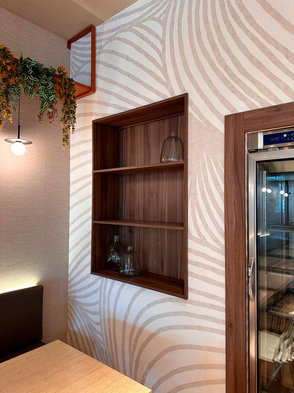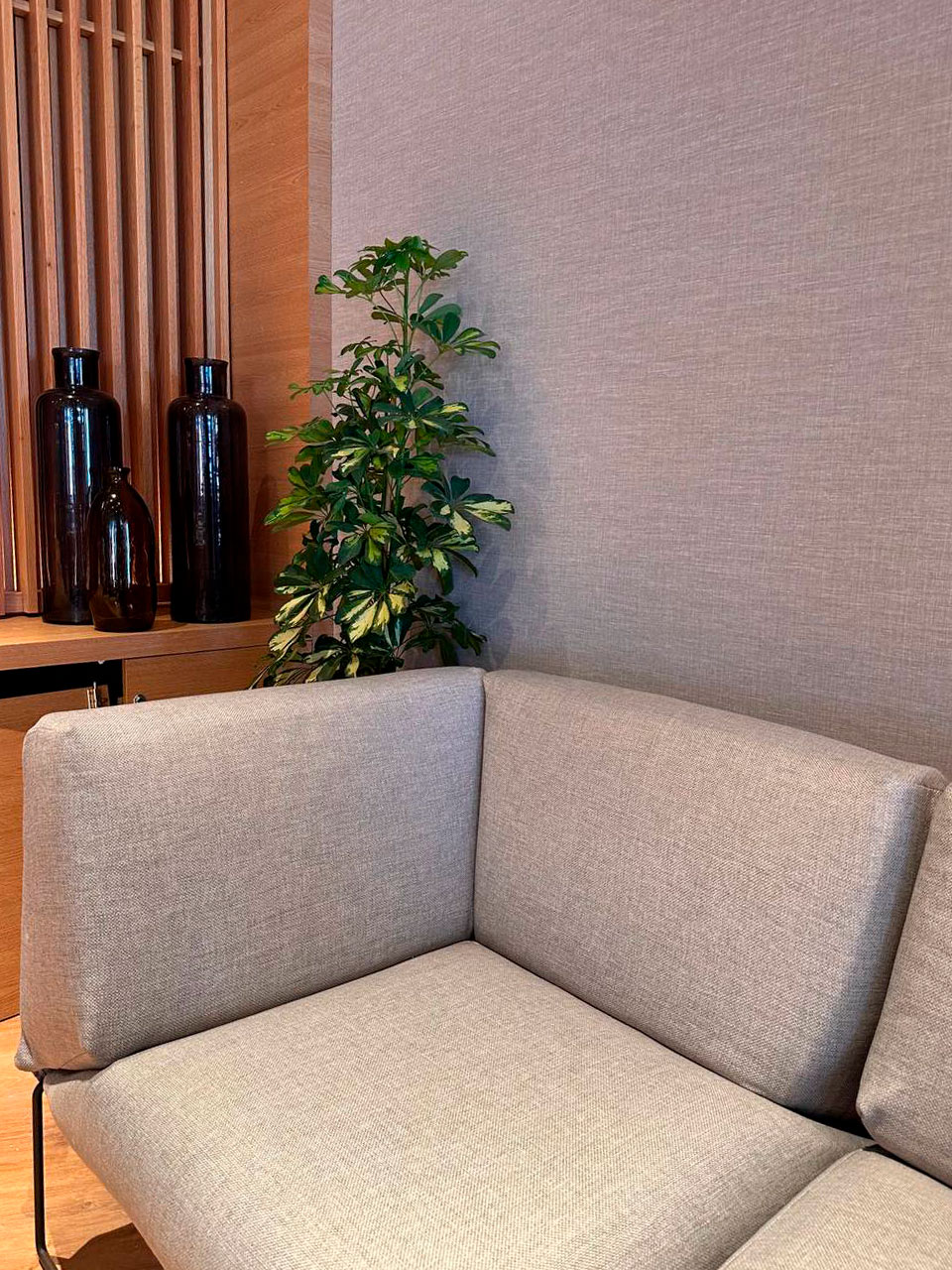 Para este proyecto se han instalado papeles de las firmas Vescom, Casamance y Arte. En DecorCentral contamos con una extensa gama, tanto de este tipo de papel pintado como de murales y papeles pintados de uso común.