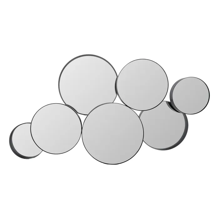 Material marco: Hierro. Diámetros de los espejos:29,5cm, 49,5cm y 41cm. Incorpora anillas para su correcta sujeción. Colocación horizontal o vertical.