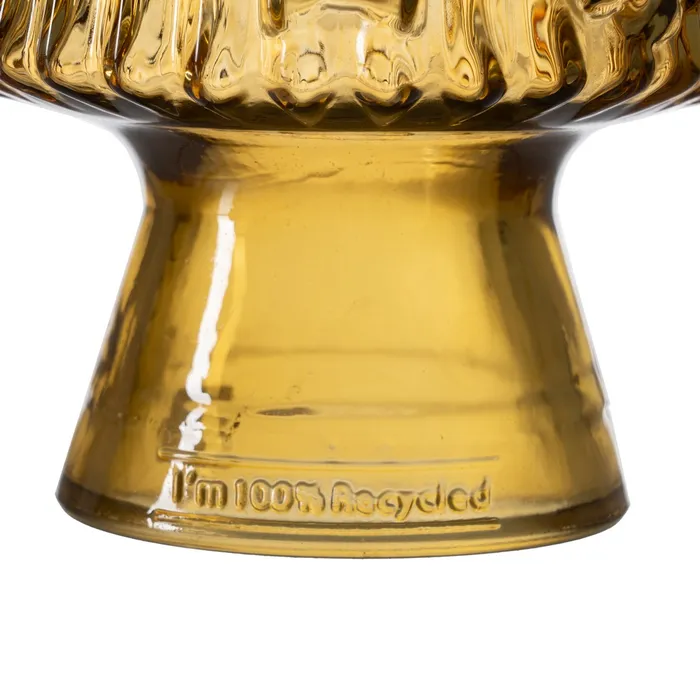 Material: vidrio 100% reciclado. Cualquier imperfección es debida a que el material utilizado es 100% reciclado. Certificado GRS. Pintura totalmente orgánica, apta para alimentación y respetuosas con el medio ambiente. Las ligeras variaciones en colores puede darse debido al proceso de pintado 100% artesanal. Se recomienda lavado manual con detergentes no abrasivos.