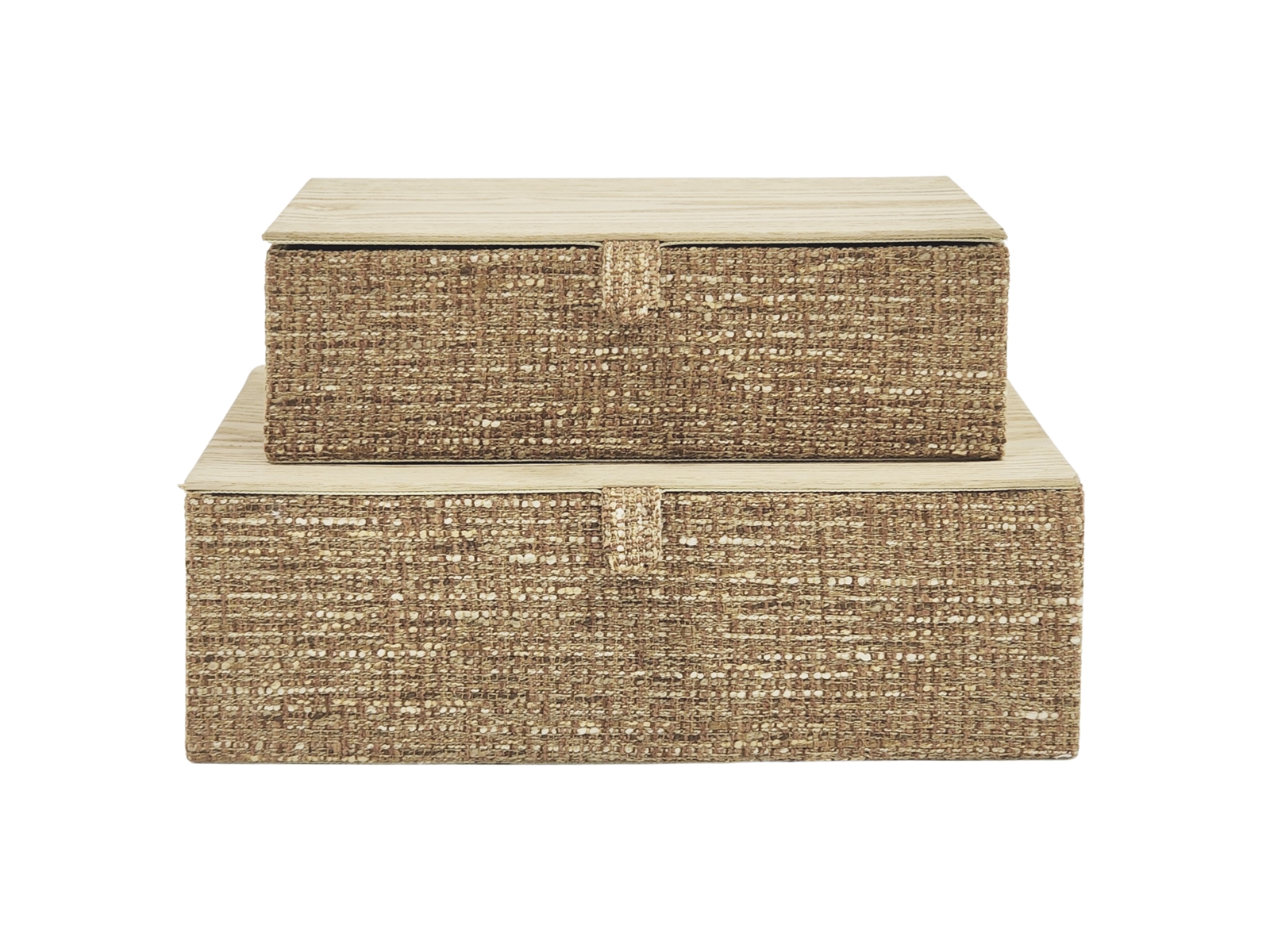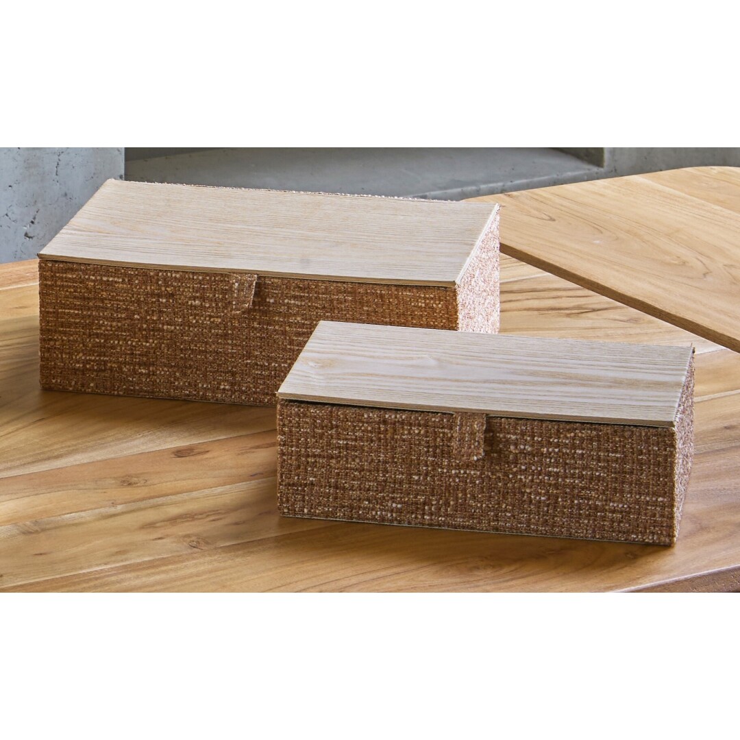 Set 2 Cajas Madera/Tejido Caramelo