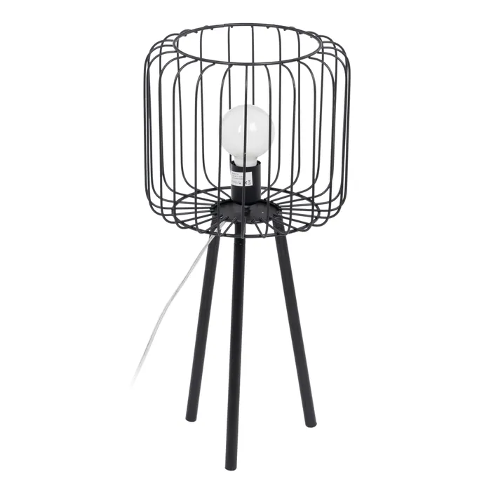 Material: hierro. Voltaje: 220-240v. 50Hz Casquillo: E27. Cable transparente, largo: 135cm. Bombilla: 1 máx. 60W (no incluida) IP20. Altura patas: 35cm.