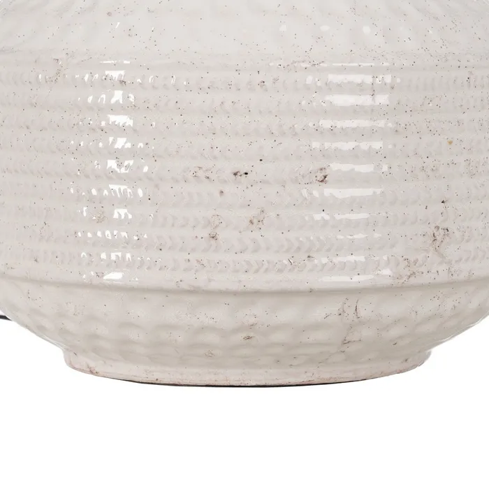 Base de terracota, medidas 31x31x27cm. Pantalla de tejido (lino), medidas 43x40x25cm. Voltaje: 220V. Casquillo: E27. Bombillas: 1*60W máx (no incluida). Longitud cable: 120cm.