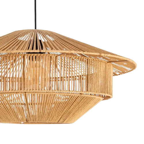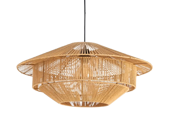 Material: cuerda de papel – metal Peso lámpara: 1.4kgr. Casquillo: E27 Bombilla no incluida. Largo cable: 80cm.