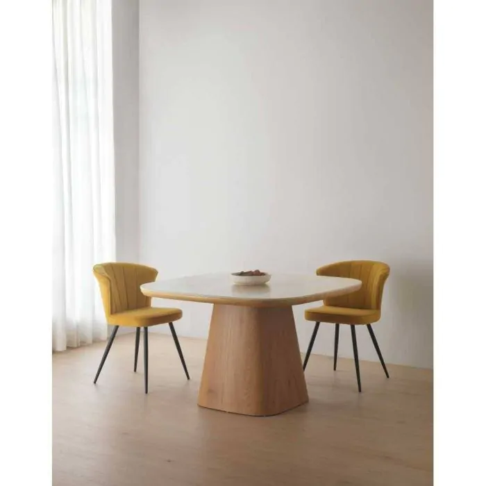 La Mesa de Comedor presenta una estructura de madera que aporta un toque cálido y natural, mientras que la encimera de cerámica brinda una superficie resistente a las manchas y a altas temperaturas. Con un diseño cuadrado, optimiza el espacio y permite una distribución cómoda para 8-10 personas, convirtiéndola en una opción ideal para reuniones familiares o cenas con amigos.
