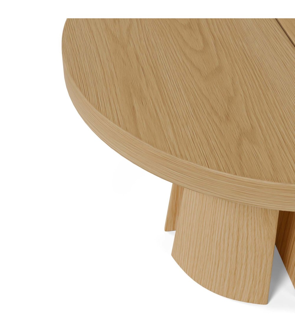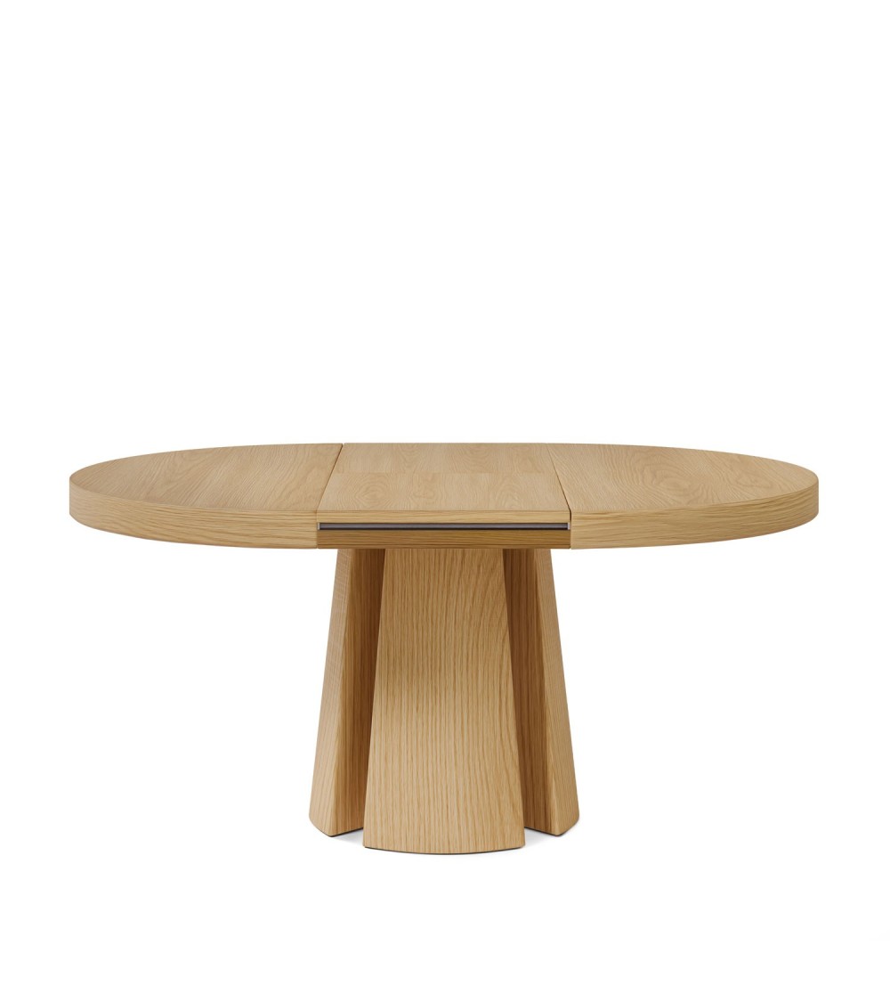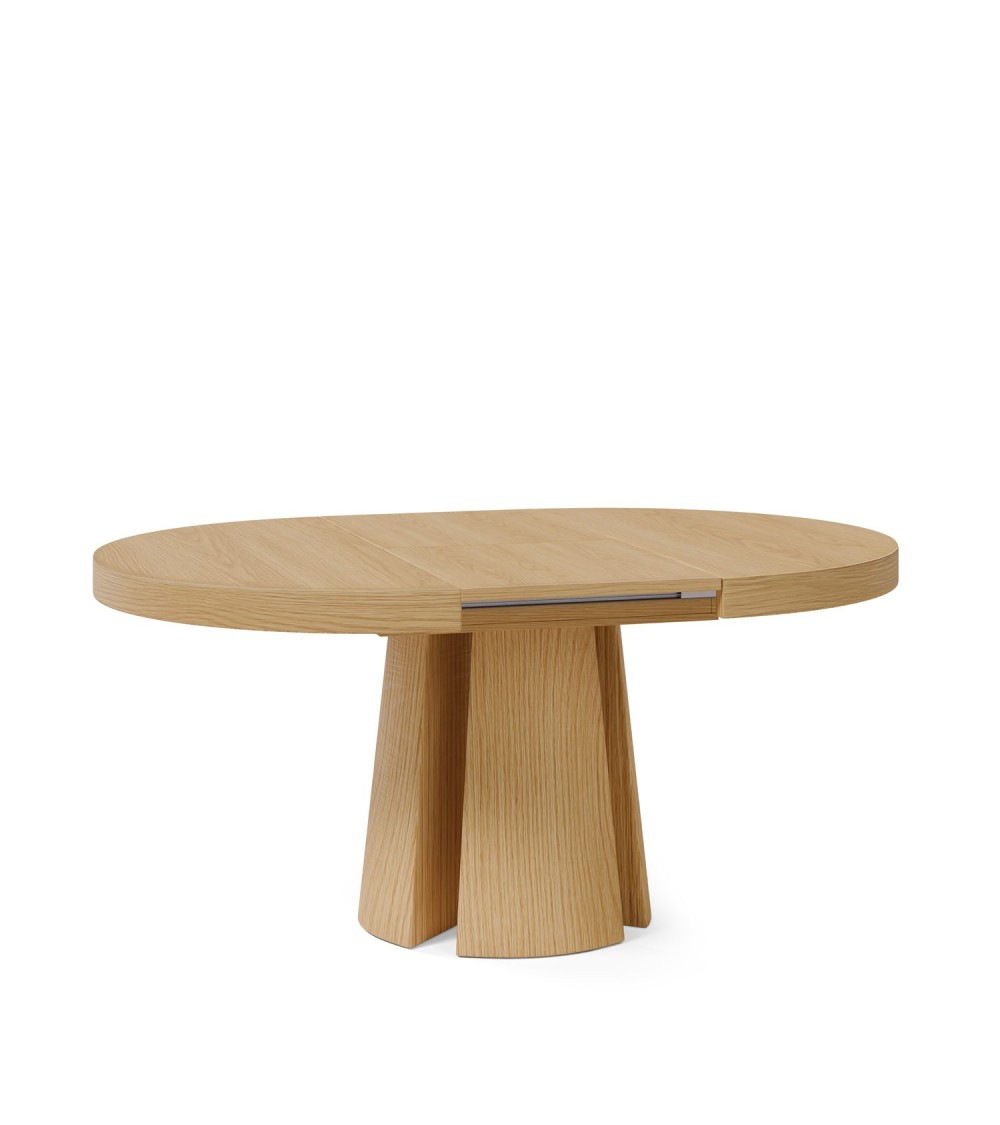 Mesa extensible que se presenta como una joya del diseño contemporáneo, combinando calidez, funcionalidad y una silueta sorprendente. Fabricada en chapa de madera de roble natura, aporta una estética natural y elegante, perfecta para enriquecer cualquier ambiente con estilo y versatilidad.
