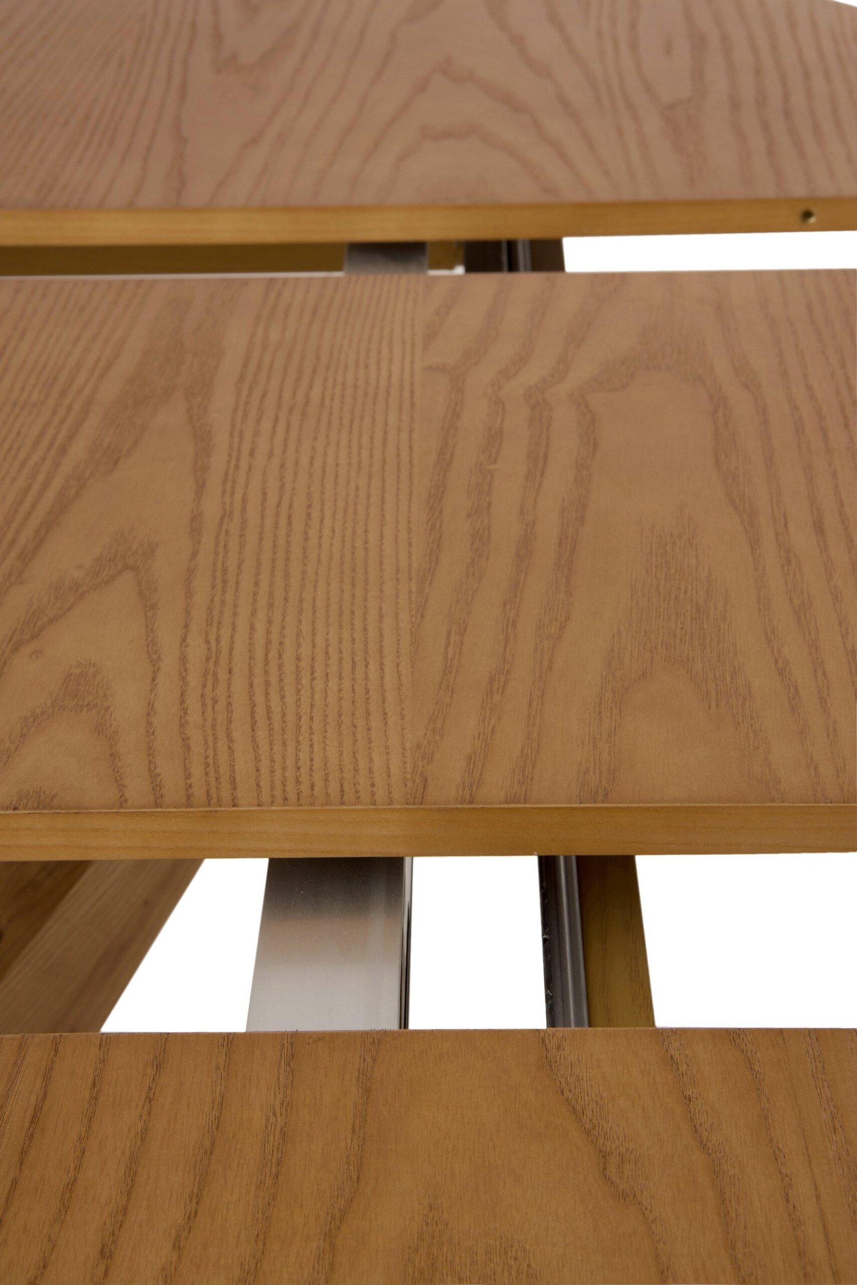 La mesa redonda extensible de 120/160×90 cm, con un elegante pie de madera de roble y un sobre chapado en madera de fresno, es una opción ideal para cualquier comedor. Su diseño rectangular presenta esquinas ligeramente redondeadas, aportando suavidad a su estética. Esta versátil mesa se extiende de forma automática al tirar de los extremos, permitiendo un aumento de longitud de 160 a 200 cm, lo que la hace perfecta para reuniones familiares o cenas con amigos, ya que puede acomodar cómodamente de 6 a 8 personas. Con un grosor de 2 cm en su superficie, es tanto robusta como funcional. Cabe destacar que el producto requiere montaje para su instalación.