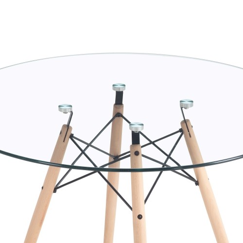 Estructura de acero pintado en color negro y patas de madera de haya natural barnizada.