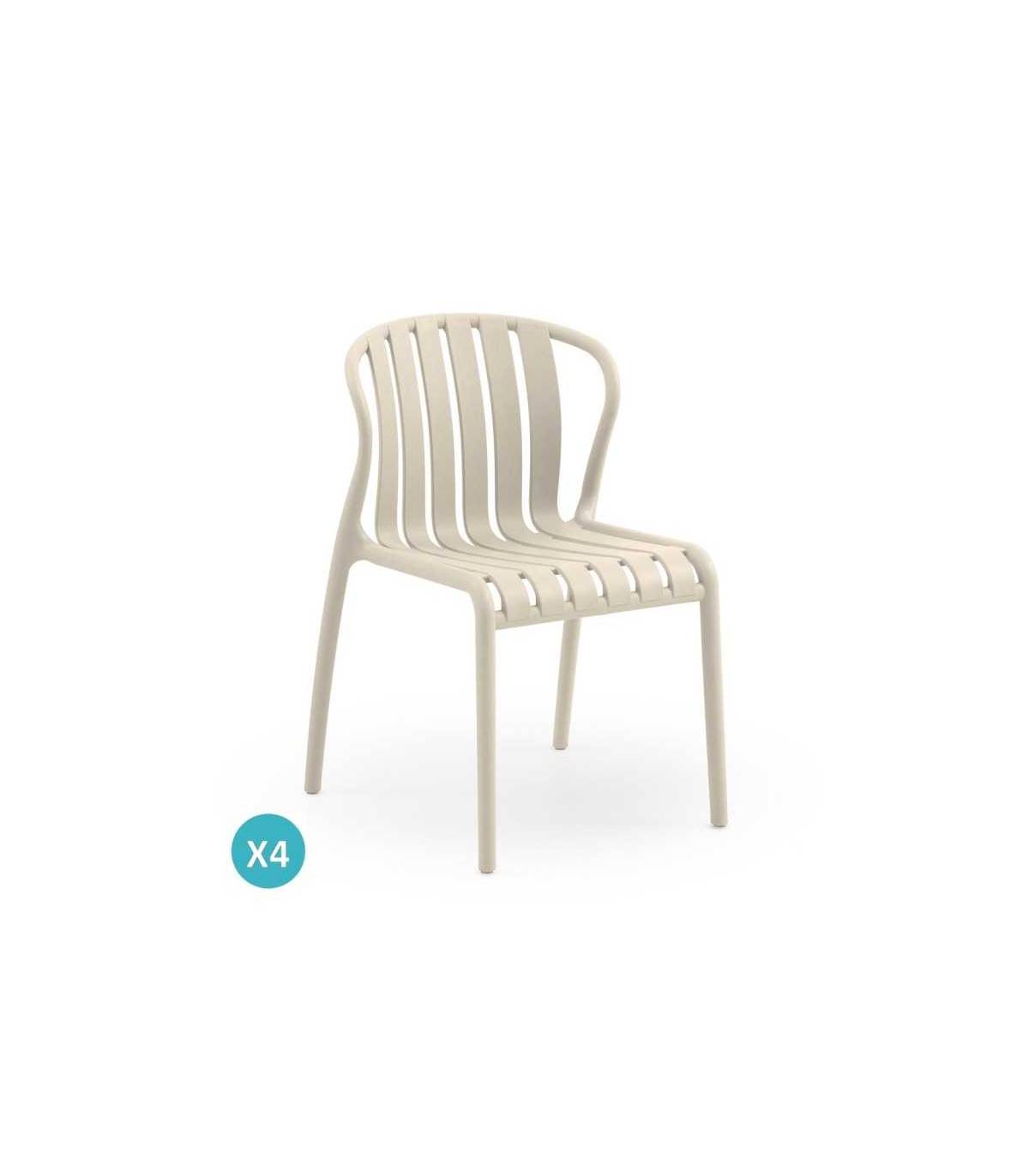 Pack 4 Sillas. Estructura en polipropileno en color crema. Asiento, respaldo y patas en polipropileno en color crema. Este Silla tiene unas características similares a otros modelos. El color crema le da un toque distintivo sobre cualquier otro producto. Las Sillas son Apilables entre ellas.
