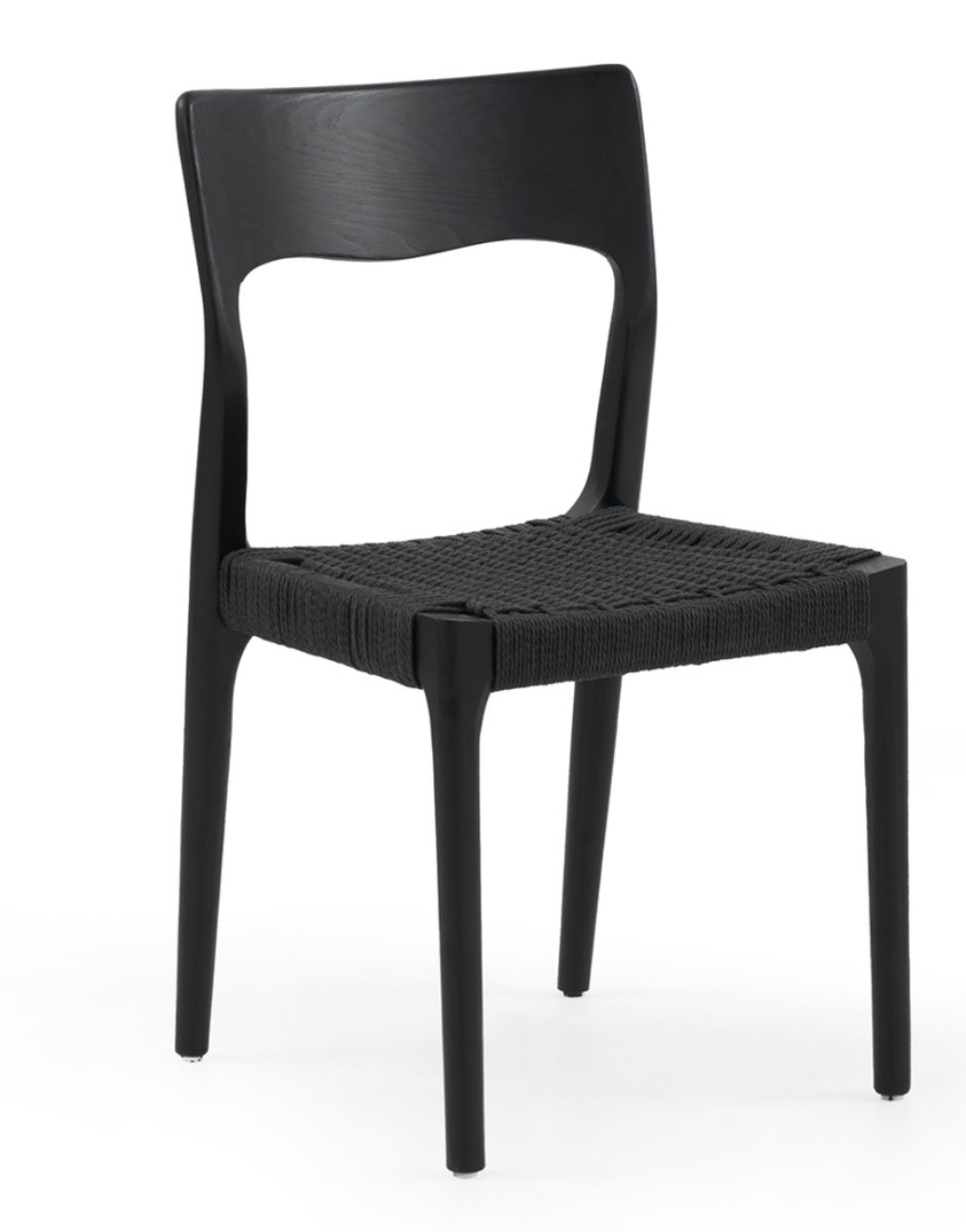 Pack de 4 sillas de diseño en madera de fresno de color negro, combina elegancia y funcionalidad. El diseño del asiento de cuerda negra aporta un toque artesanal y garantiza durabilidad y confort, ideal para cualquier espacio de tu hogar, para diferentes tipos de mesa, para uso diario confortable.. Fabricada con materiales de primera calidad por GABAR, duradera y resistente.