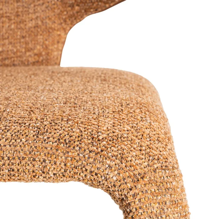 Material: tejido, estructura de metal. Altura asiento: 47cm. Ancho asiento: 48cm. Profundidad asiento: 45cm. Altura respaldo: 38cm. No apilable. Cumple la normativa EN16139 (catering).