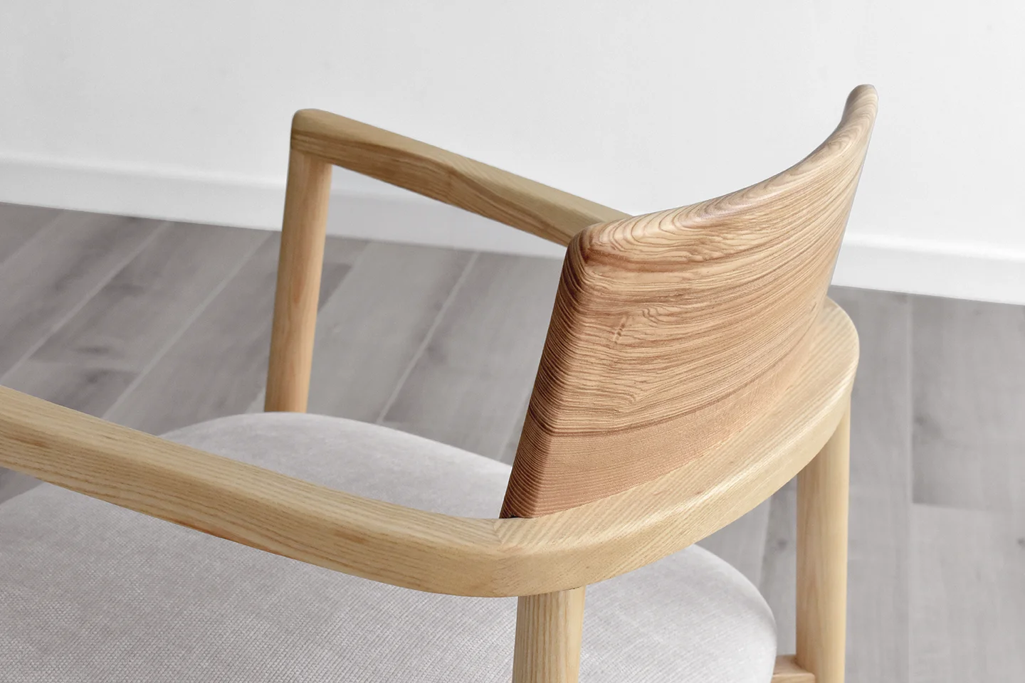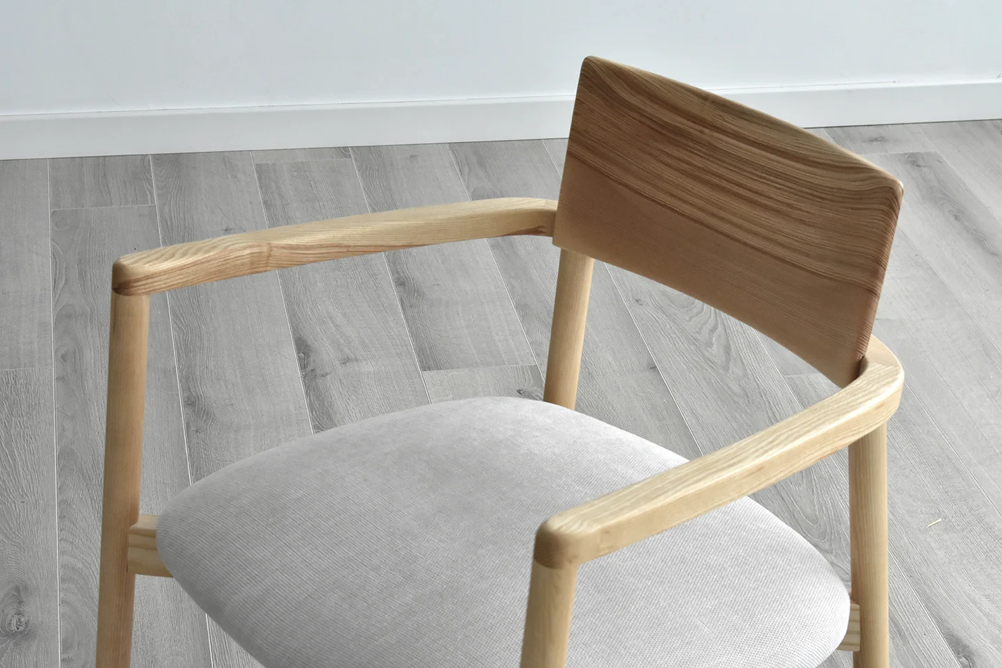 Nuestra silla Lêvic es una pieza que encarna la esencia del diseño nórdico con su elegancia sencilla y funcionalidad excepcional. Fabricado en Fresno este sillón combina líneas limpias y curvas suaves para ofrecer el máximo confort. El respaldo curvado y el asiento tapizado no solo brindan una estética moderna y acogedora, sino también un soporte ergonómico ideal para largas horas de uso. El diseño del Sillón Levic resalta la belleza natural de la madera, manteniendo una estética minimalista que se adapta a cualquier espacio. Sin duda, es perfecto para aquellos que buscan añadir un toque de sofisticación y calidez a su entorno.