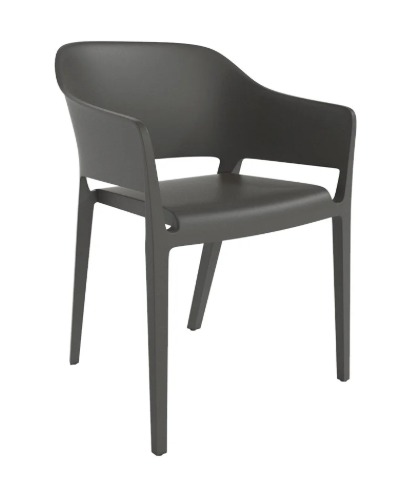 La silla apilable Valeta estilo monobloc, de diseño elegante y moderno, cuenta con una estructura de polipropileno acabada toda en el mismo color.