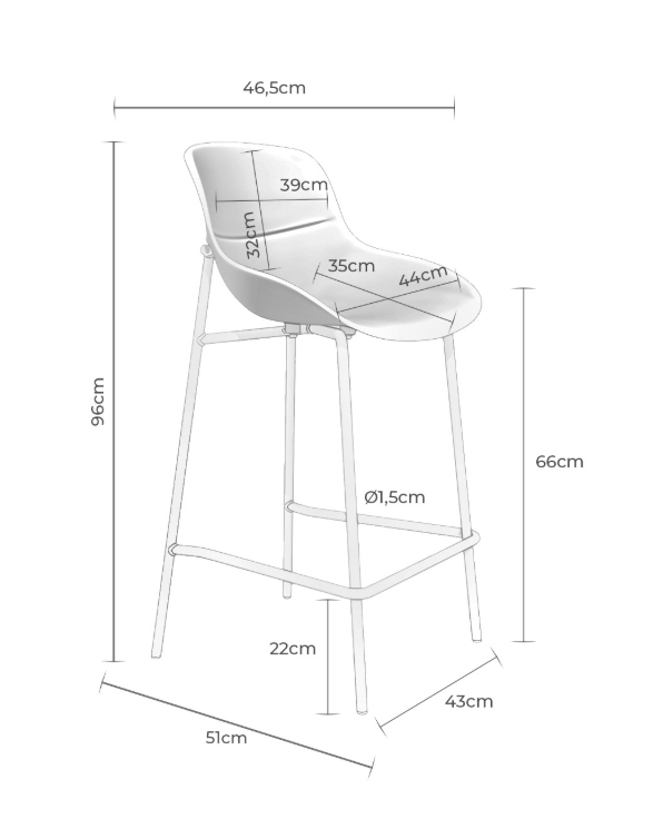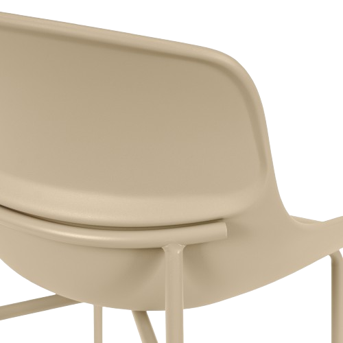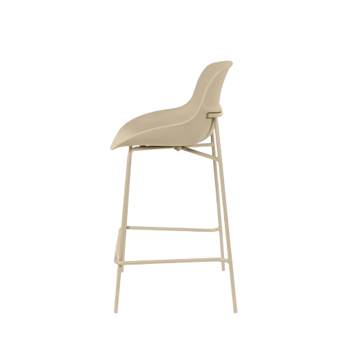 Su asiento de polipropileno de bordes suaves se posa sobre una estructura metálica esbelta, logrando un equilibrio entre funcionalidad y diseño contemporáneo.