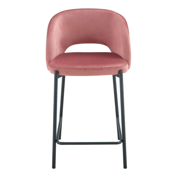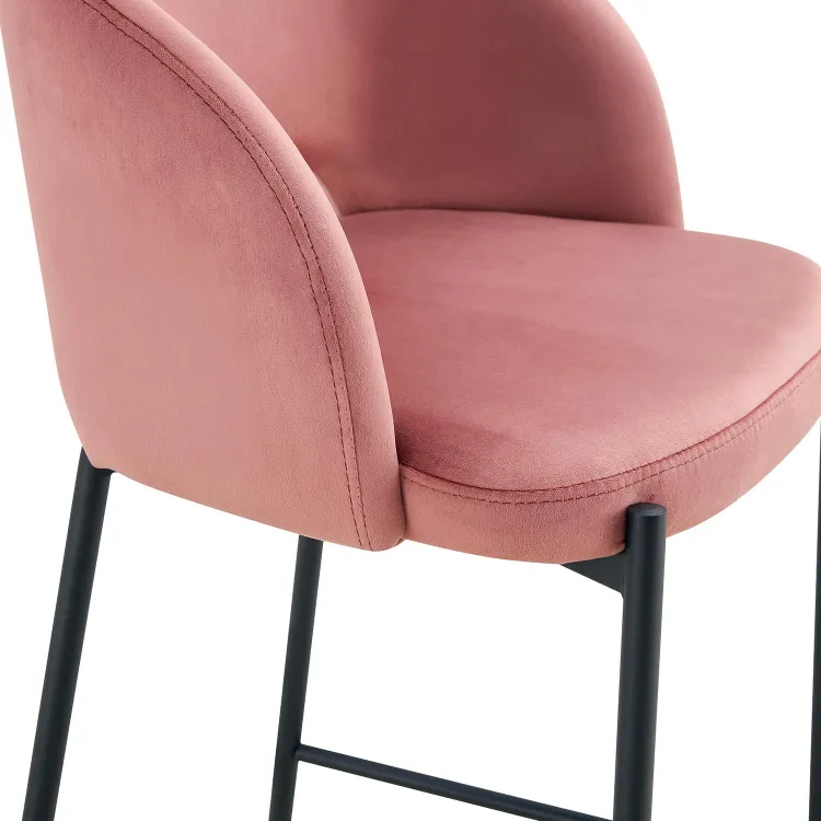 Taburete tapizado en terciopelo color rosa.