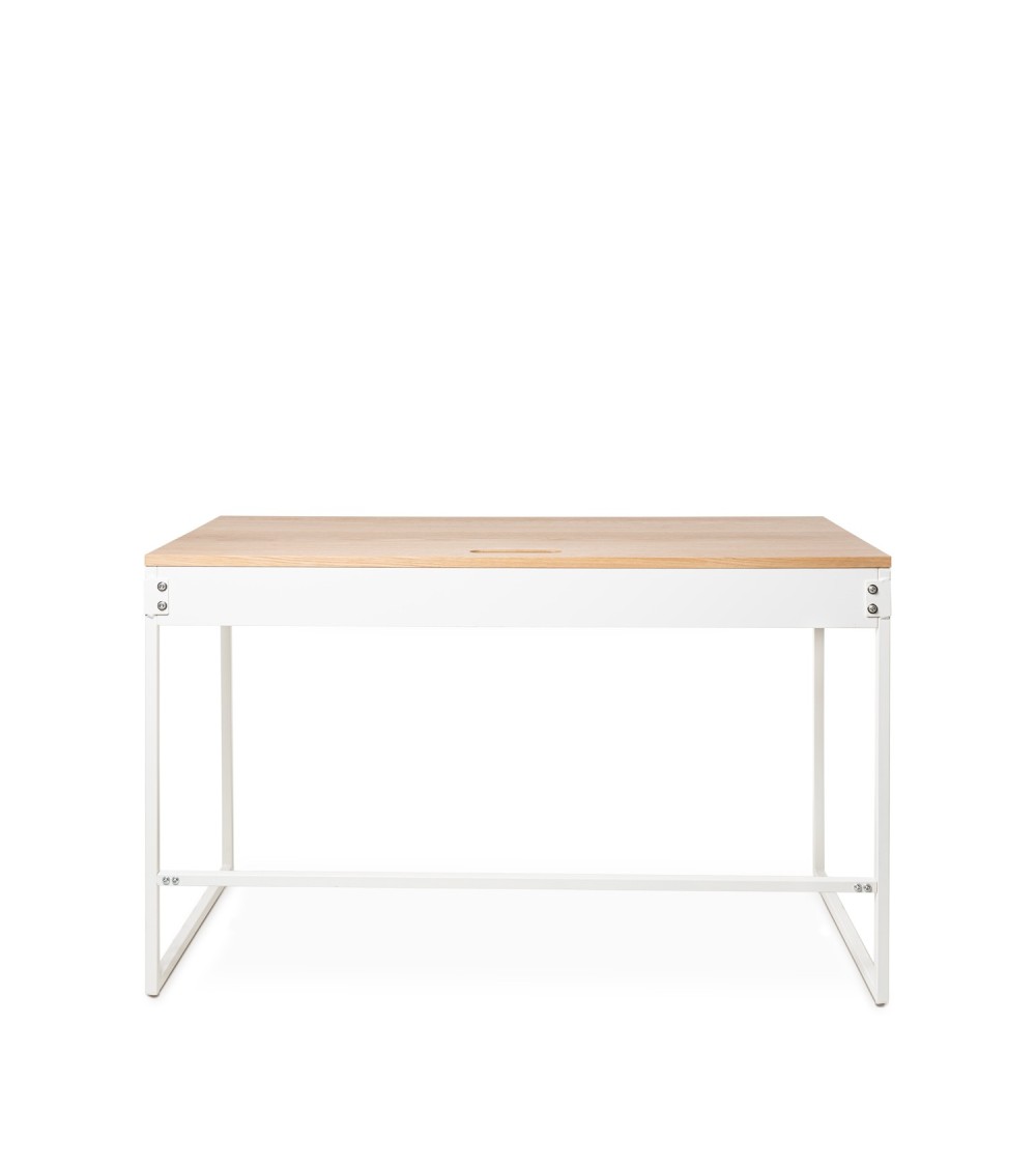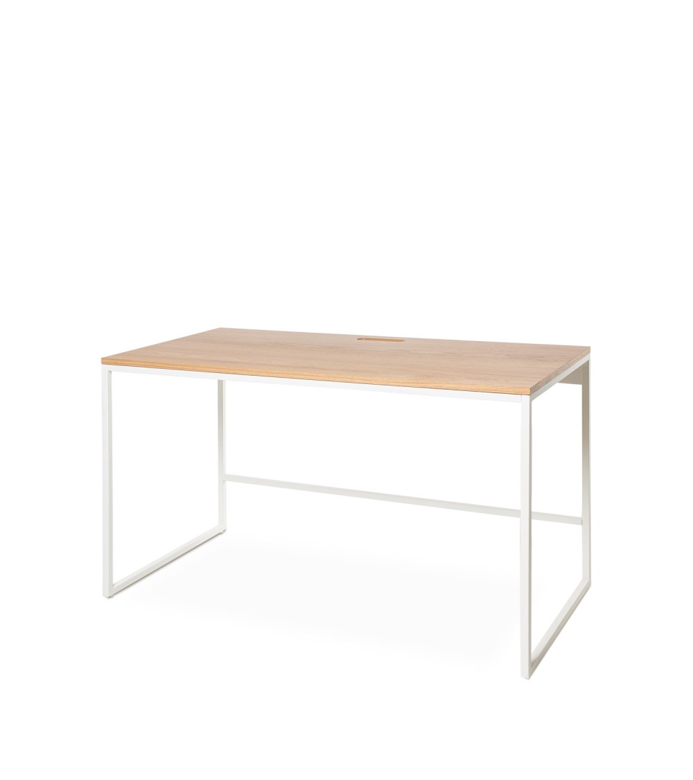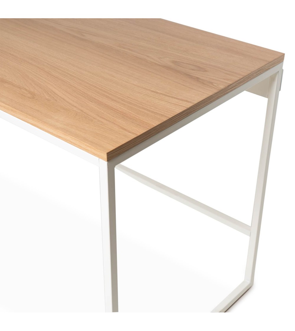 Escritorio de líneas minimalistas con tapa sintética en color roble, que aporta un toque moderno y natural a tu espacio. Su estructura metálica en color negro ofrece estabilidad y un diseño elegante. Perfecto para oficinas o espacios de trabajo, combinando funcionalidad y estilo con un acabado de alta calidad.