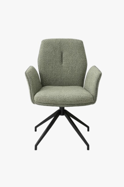 La silla Ansa es una silla giratoria 360º de estilo moderno, tapizada en tejido verde. Cuenta con respaldo y brazos envolventes que aportan comodidad, y base metálica negra que garantiza estabilidad y un diseño contemporáneo.