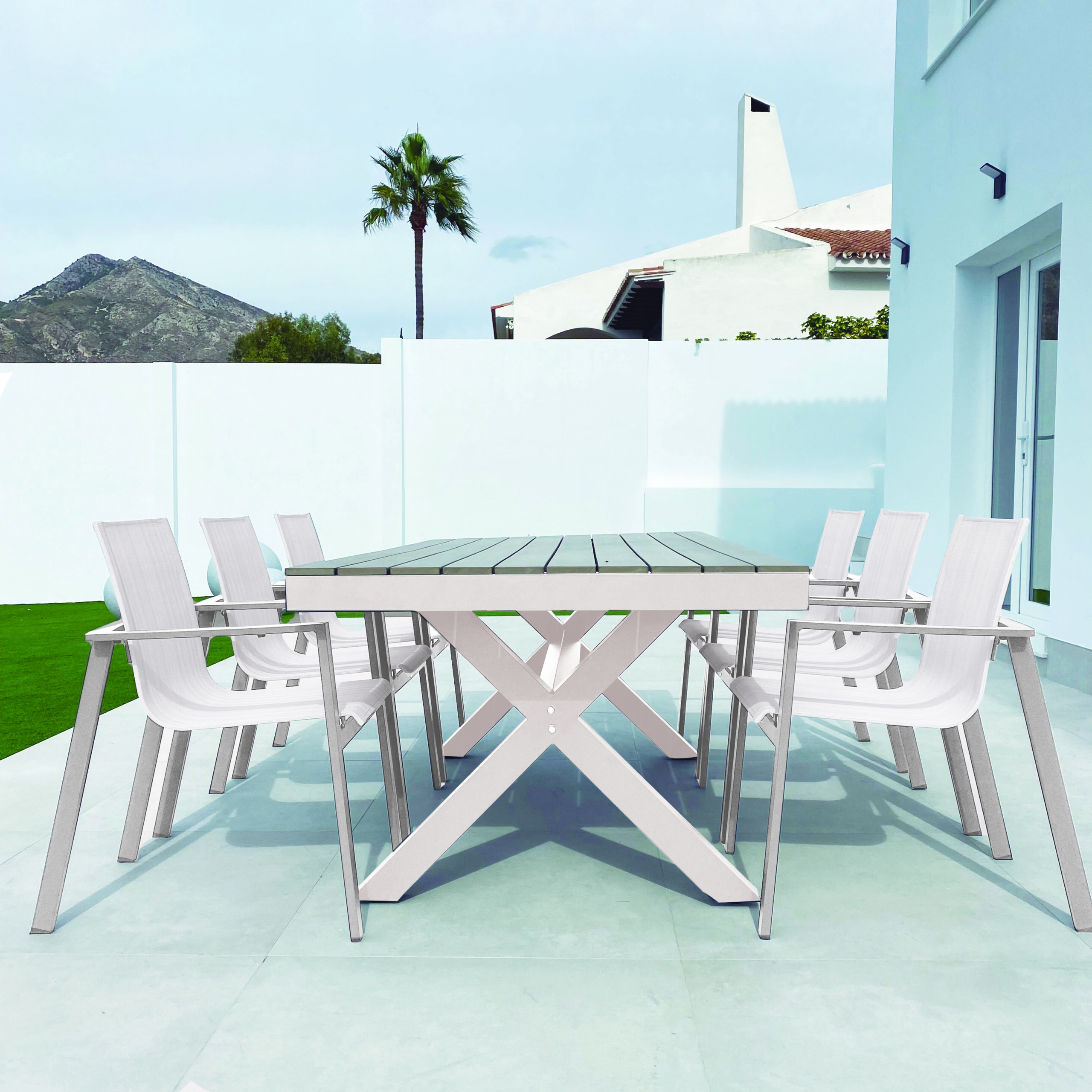 Un clásico moderno, la versión del estilo de «picnic romántico» que imprime carácter a tu comedor exterior, con un excelente espacio para hasta 8 personas.
