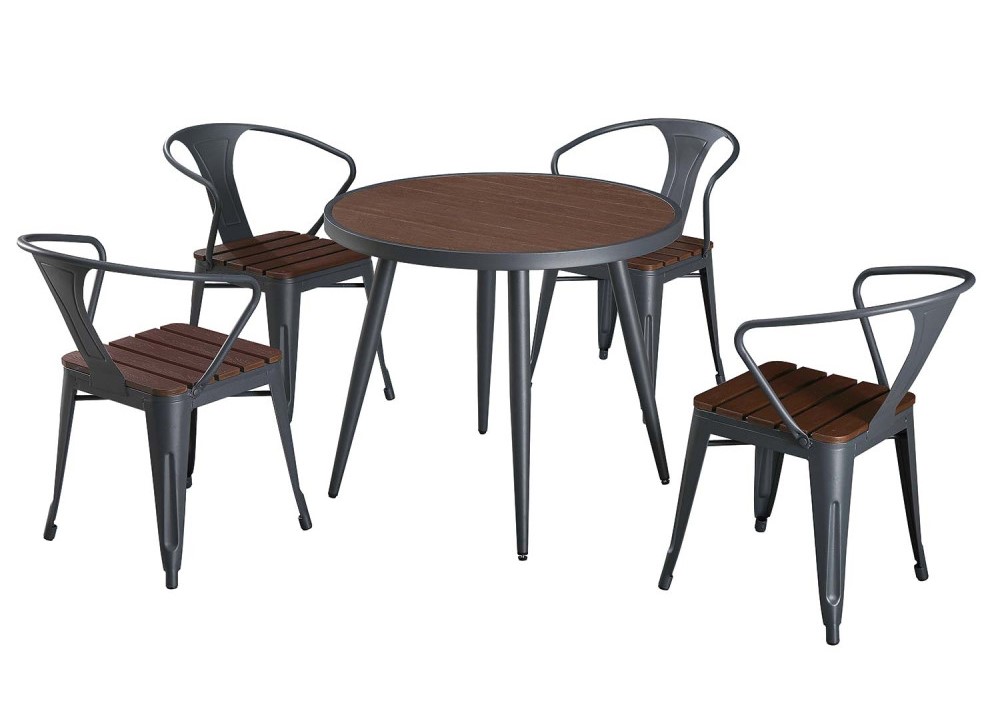 · Fabricada en PE y metal con efecto madera.