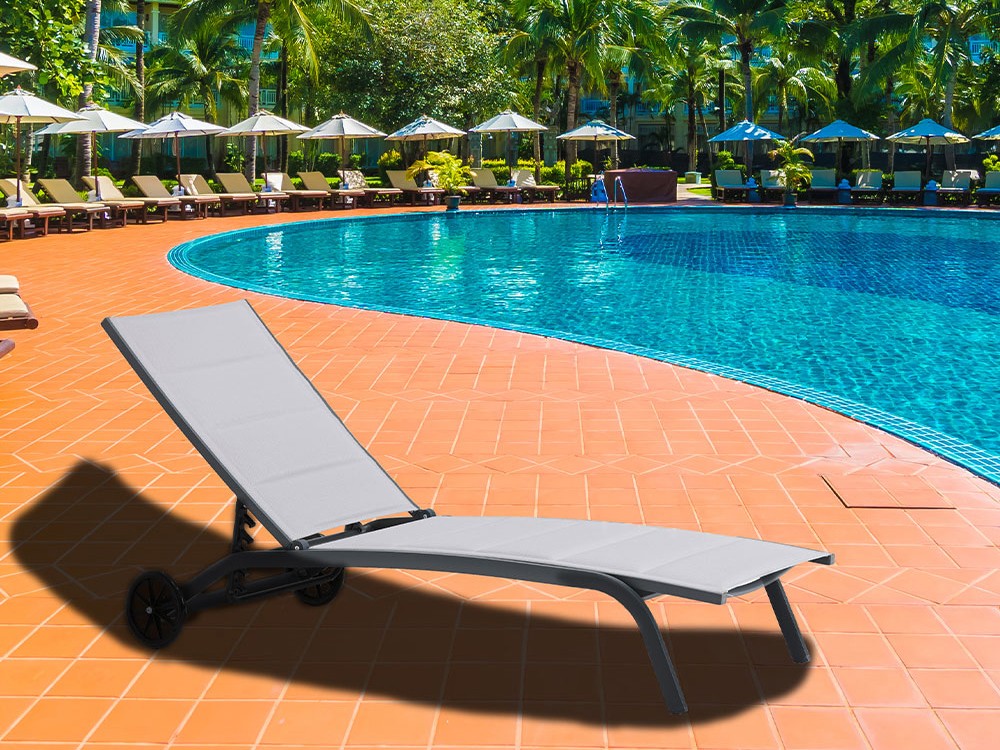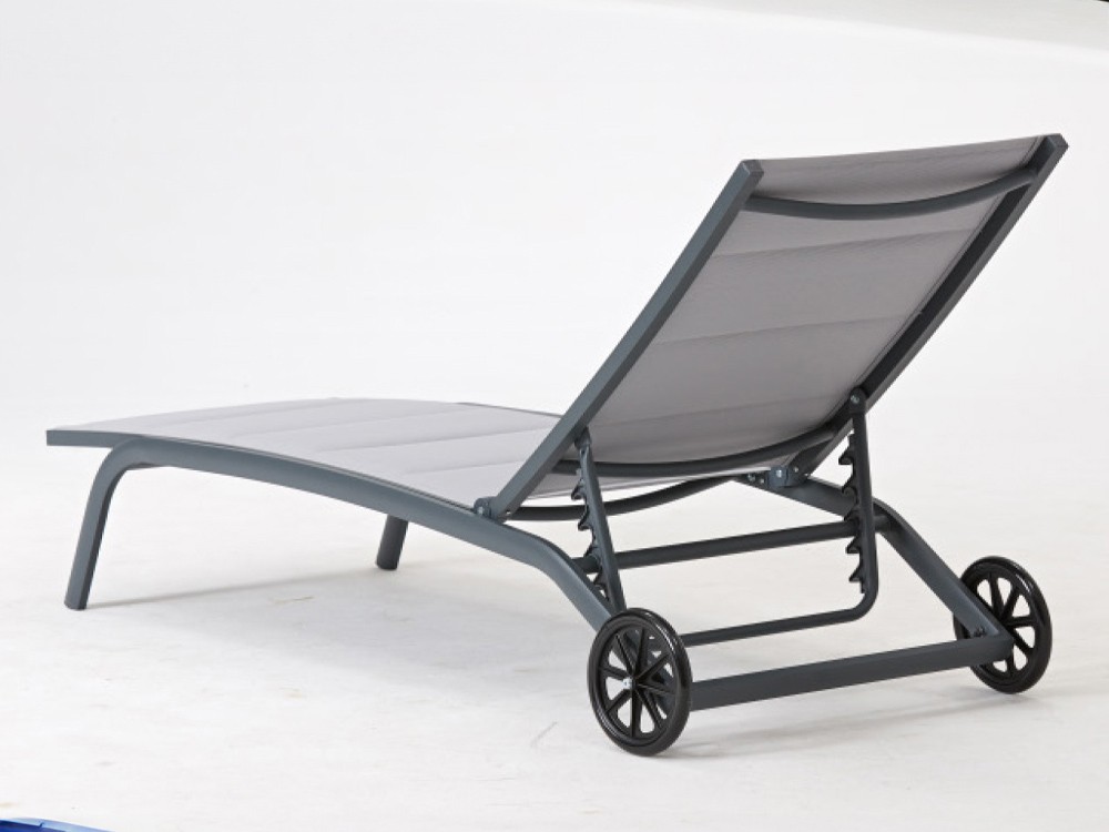 Tumbona reclinable en varia posiciones con estructura de aluminio en color antracita.