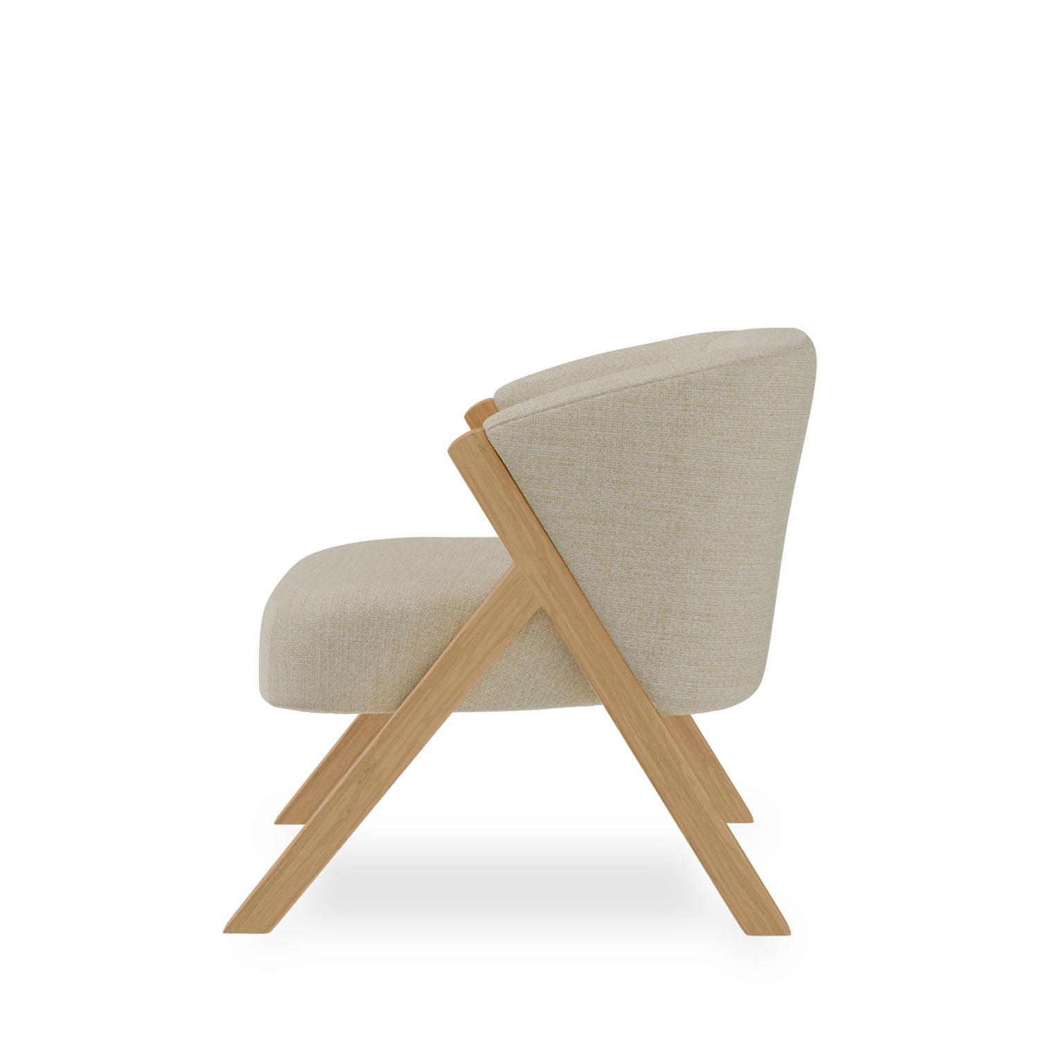 La butaca Sintra contempla un diseño moderno y natural. El tapizado de tela Tango así como las patas realizadas en madera ayudan a crear un ambiente único tanto en hogar como en oficinas.