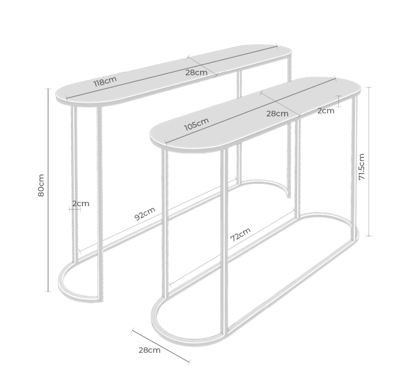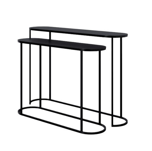 El set de consolas AIZA se distingue por su diseño elegante y versátil, ideal para realzar la estética y optimizar la funcionalidad de distintos espacios en el hogar. Su estructura combina sofisticación y resistencia, gracias a su base metálica y patas de hierro en color negro, que aportan estabilidad y un aire contemporáneo.