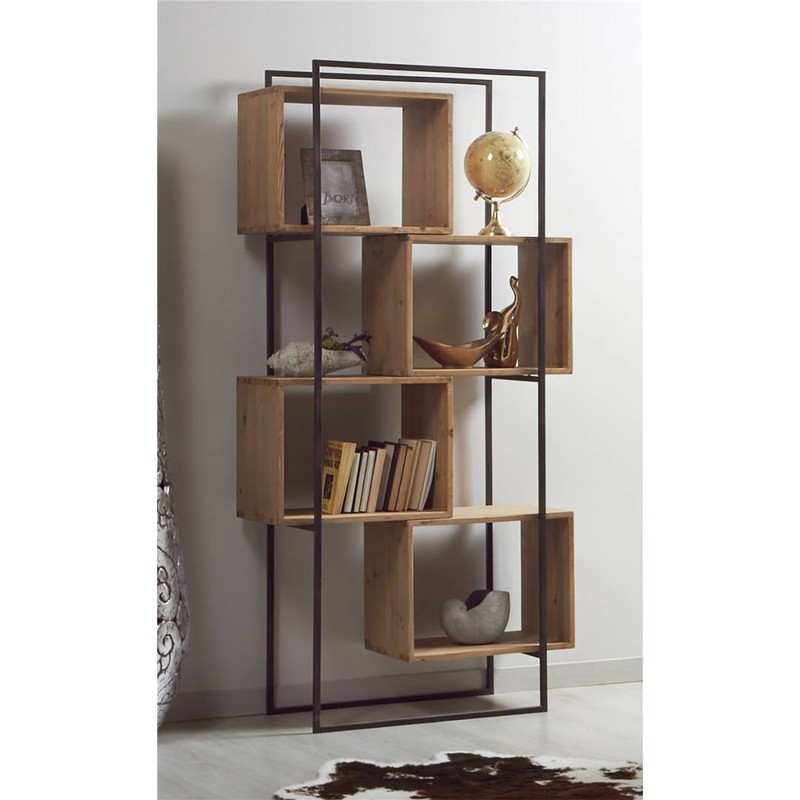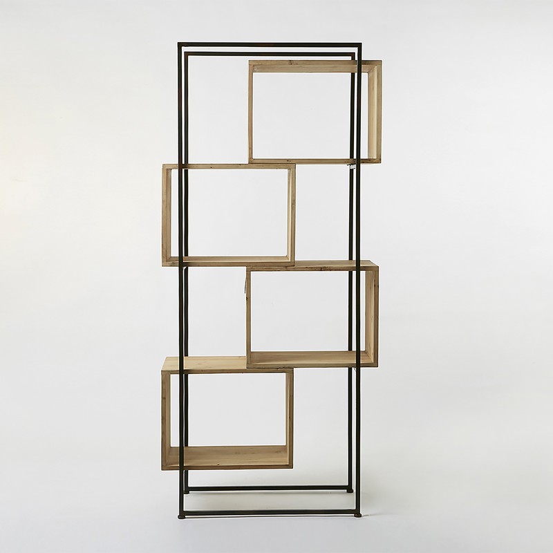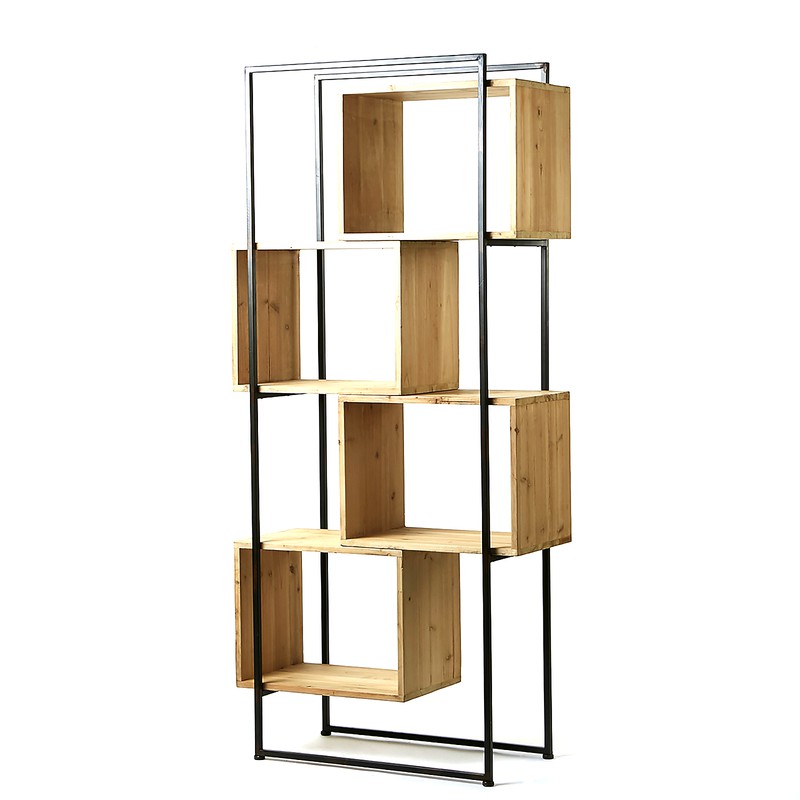 Estantería Brais de tamaño L de madera y metal de color natural y negro.