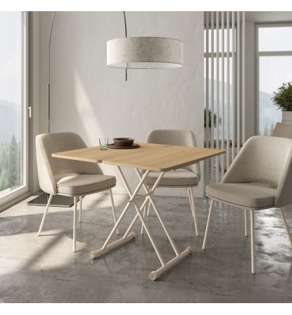 La mesa libro extensible y elevable ATRIO es una solución para hogares que buscan optimizar el espacio. Combina un sistema elevable con apertura tipo libro, permitiendo utilizarla como mesa de centro, mesa auxiliar o mesa de comedor según cada momento.