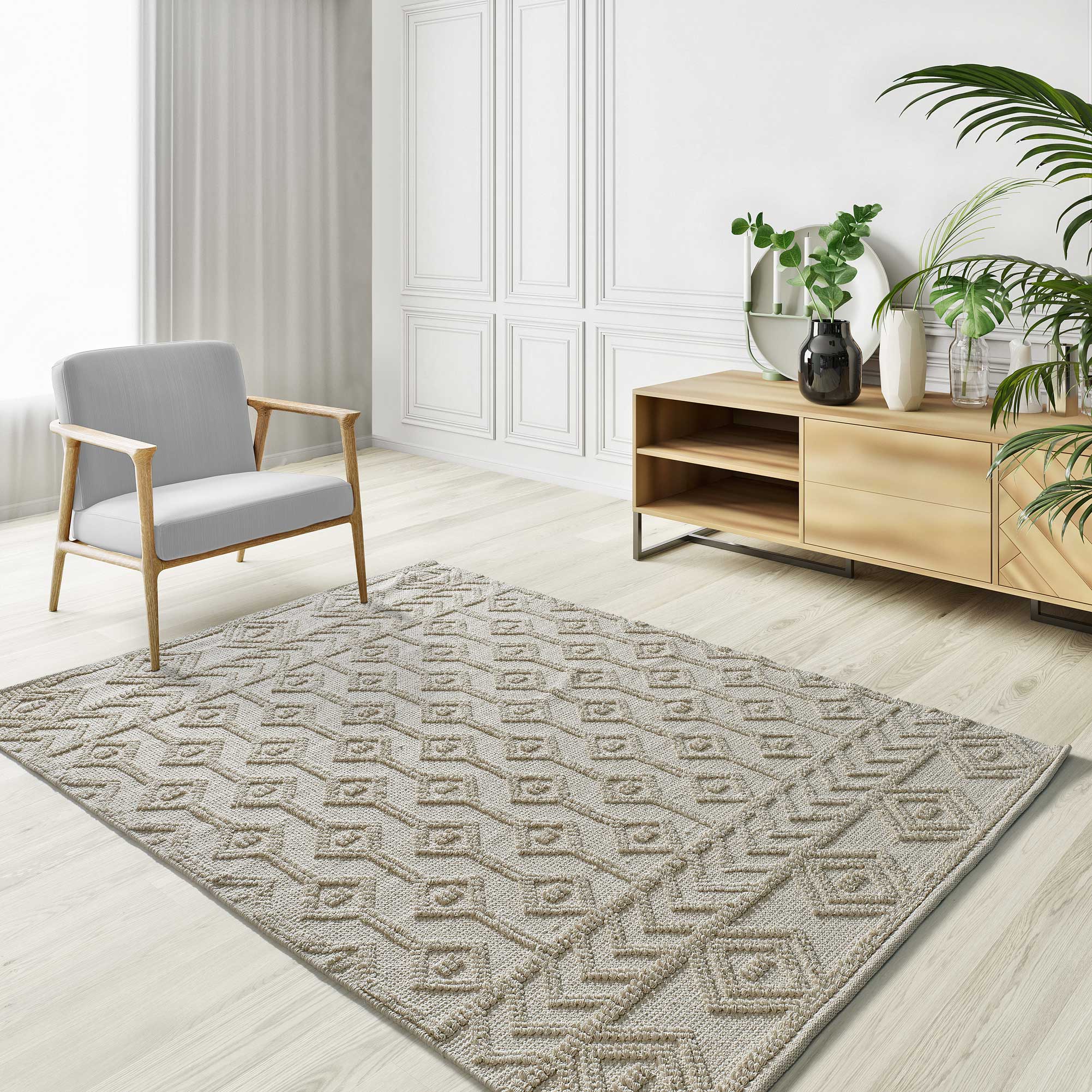 PAMUK, nuestra alfombra hecha a mano con fibras naturales y algodón reciclado que modificará totalmente el ambiente de tu salón o dormitorio. Una alfombra tejida de forma artesanal usando tonos naturales que encajan en cualquier decoración y aportan una luz diferente a tus estancias.