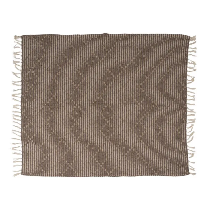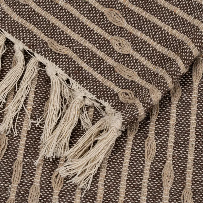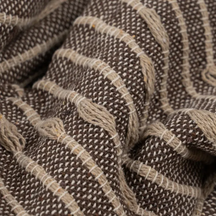 TEJIDO A MANO. PLAID MULTIUSOS DE ALGODÓN RECICLADO. 50%ALGODÓN RECICLADO, 40%POLIÉSTER, 5%ACRÍLICO, 5% VISCOSA. LIMPIAR SÓLO ÁREAS ESPECÍFICAS.